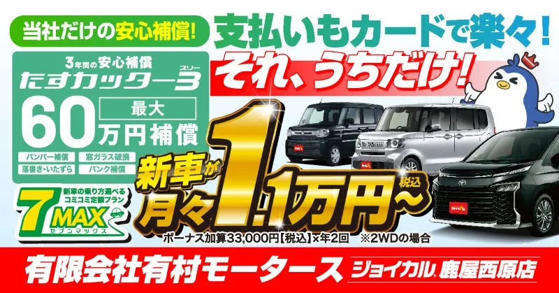 「頭金0円」、しかも購入時にかかる「登録諸費用」や、 車の維持にかかる「自動車税」「オイル交換費用」