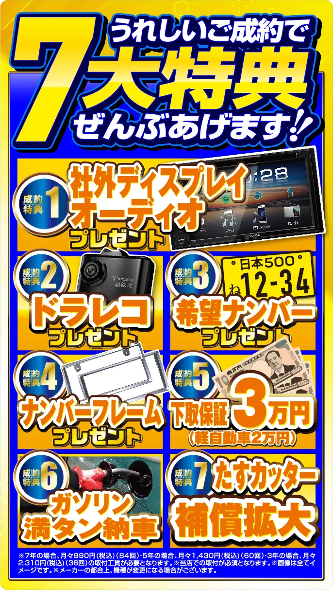 ご契約されたお車には、もれなく
